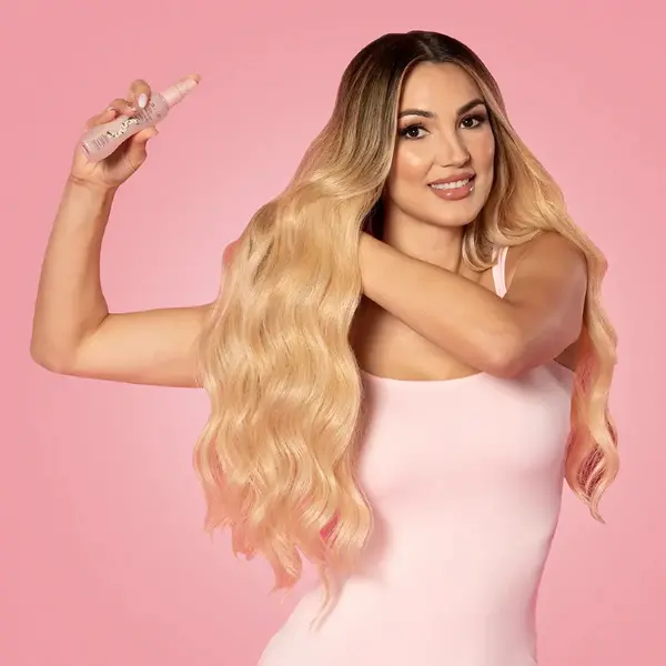 - Houd de verpakking 6-8 centimeter van het haar en spray gelijkmatig door het haar.