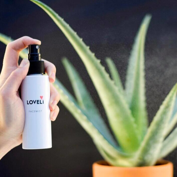 De Loveli facemist is bedoeld voor na je gezichtsreiniging. Het zorgt ervoor dat de pH-waarde van je huid weer hersteld wordt. Kraanwater heeft namelijk een hoge pH-waarde, dus als je je huid met water hebt gewassen, wil je dat graag weer herstellen. De aloë vera in de facemist zorgt voor het herstel van de pH-waarde van je huid. Verder zit de facemist boordevol verzorgende ingrediënten zoals rozenwater en groene thee. Inhoud: 100 ml in een glazen fles.