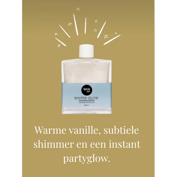 LAOUTA WINTER GLOW oil is een heerlijke geurende en glanzende bodyolie. Het is vervaardigd van 99% natuurlijke ingrediënten. Het heeft een sensuele warme geur van BERGAMOT & VANILLA!